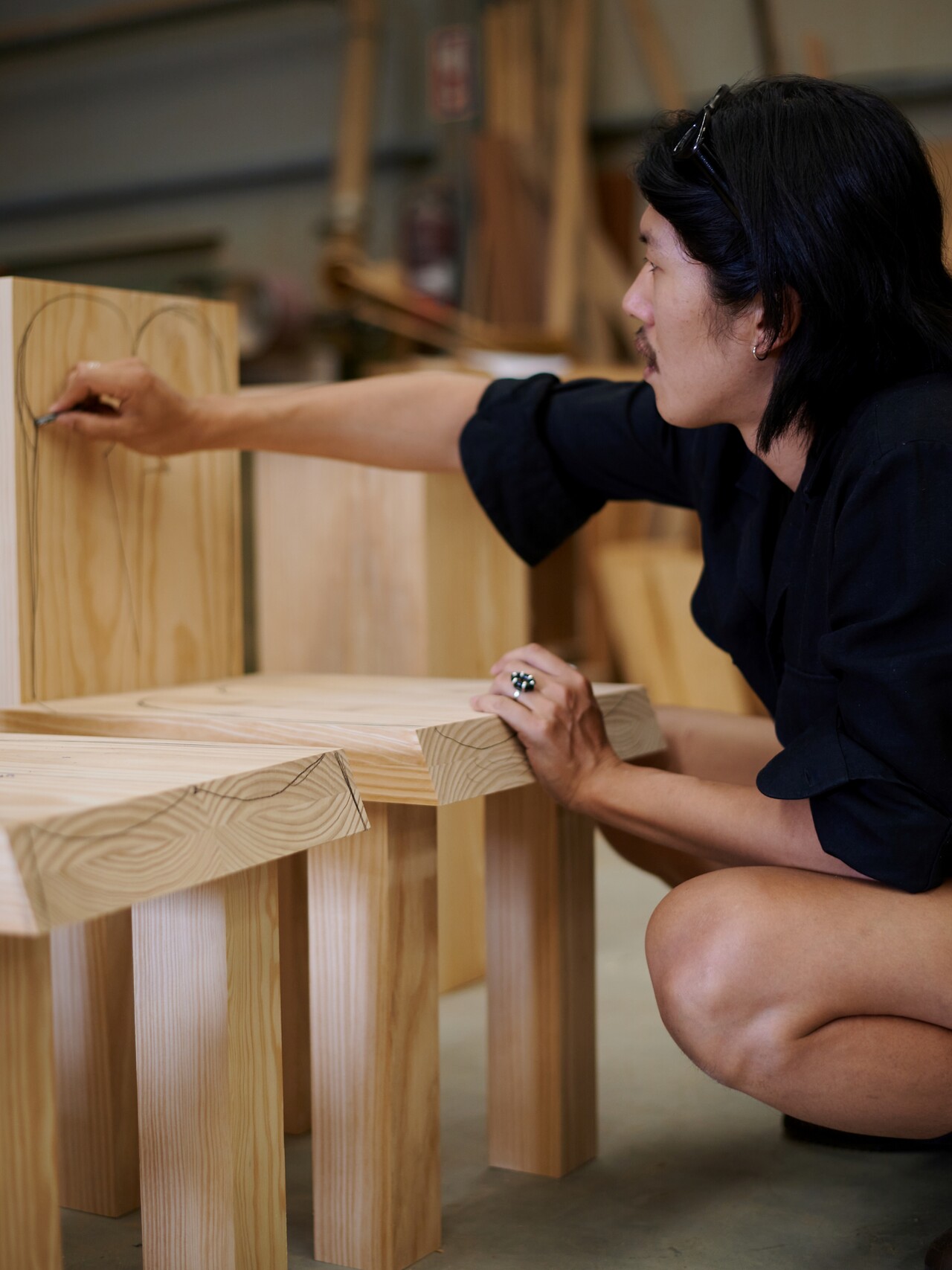 시간의 무게를 견디며 금속을 다루는 임문걸 작가. 작업할 때 거슬리지 않으면서도 자연스럽게 공간에 스며드는 느낌의 뷰티 제품을 선호한다.