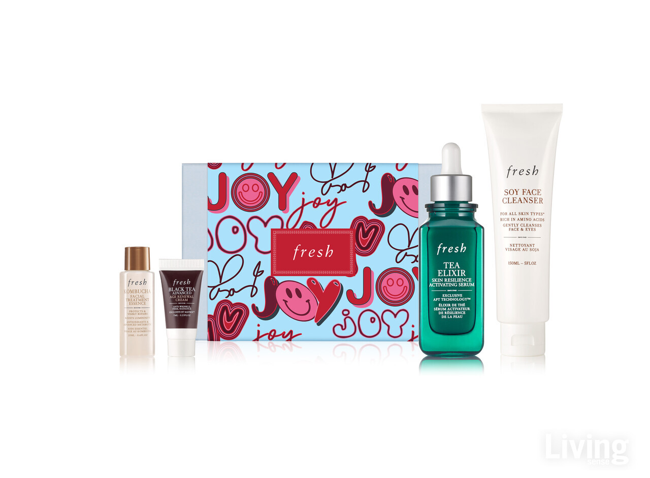 총 9개의 홀리데이 세트를 출시한 프레쉬. 한국에선 1개의 특별한 세트가 추가로 출시됐다. 글로벌 셀러브리티 파트너인 레드벨벳 조이가 선택한 스킨케어 아이템으로 구성된 ‘조이의 페이보릿 세트’가 바로 그 주인공. 소이 페이스 클렌저, 티 엘릭시어 세럼, 콤부차 페이셜 트리트먼트 에센스, 블랙티 에이지 리뉴얼 크림 등으로 구성된 세트는 백화점 매장에서 한정 수량으로 판매된다. 조이의 페이보릿 세트, 19만5000원.