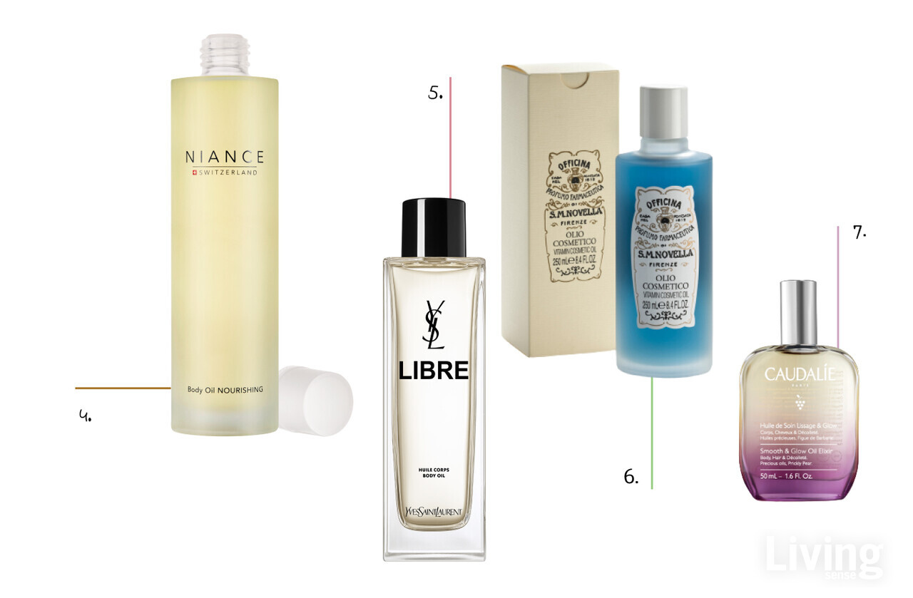 04. 피부 회복력과 탄력을 향상시켜 주는 바디 오일 너리싱. 자극 없이 안티에이징을 돕는 제품으로 섬세한 플로럴 향이 몸의 긴장까지 풀어준다. 200ml, 28만원 니앙스.