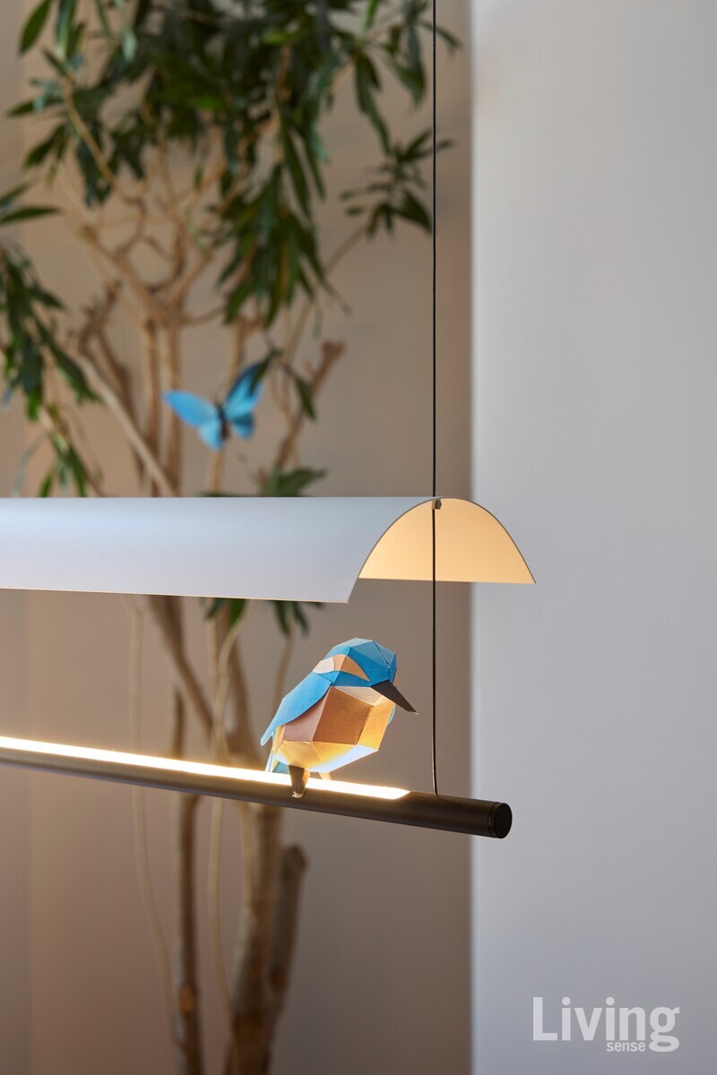 펜던트 조명은 복층 공간에서 더욱 돋보이는 아이템. 길게 내려오는 조명의 라인이 인테리어 포인트가 되며, 높이를 낮게 달아도 색다른 분위기를 연출할 수 있다. 설치 제품은 산타 앤 콜의 라미나 조명.