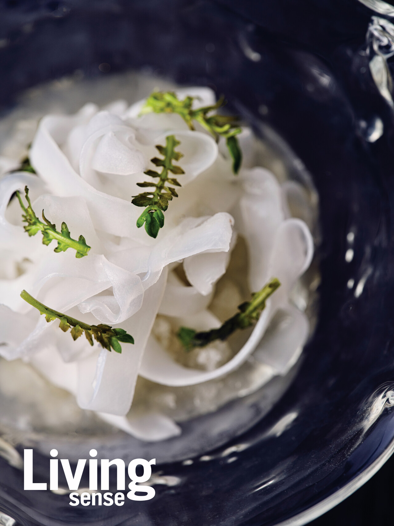 "이번 요리에서는 냉이를 캐며 볼 수 있었던 ‘천천히 녹아 사라지는 눈의 풍경’을 형상화했습니다. 겨울이 끝나고 봄이 시작되는, 계절이 바뀌는 섬세한 변화를 표현했어요."