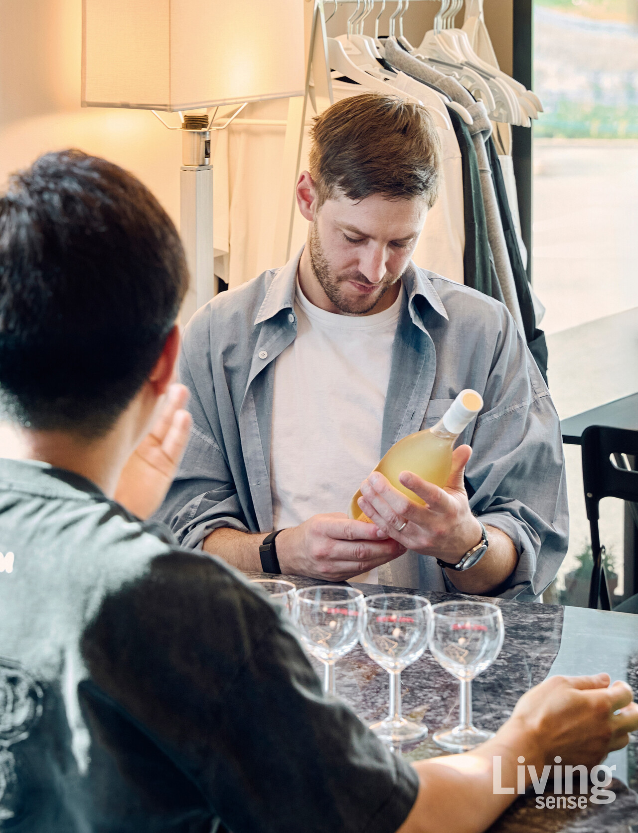 조셉 리저우드 셰프와 함께하는 양조장 투어, 그 두 번째 목적지는 바로 경기도 화성시의 한적한 마을. 이곳에 자리한 ‘마스브루어리화성양조장’에서 지역의 포도와 술이 빚어내는 이야기를 만났다. 붉은 행성 ‘화성(Mars)’과 경기도 ‘화성(華城)’, 2가지 의미를 지닌 이 양조장은 화성만의 술을 빚는다. 마스브루어리의 김기명 대표가 만드는 술은 와인도, 막걸리도 아닌 ‘한국식 포도 술’이다. 전통 누룩과 쌀로 빚은 탁주에 포도를 함께 발효시키며, 은은한 포도 향과 자연스러운 단맛, 산뜻한 신맛이 조화를 이루는 특별한 맛을 완성했다. 마스브루어리는 술을 실험하는 과정을 숨기지 않는다. 당도와 산도, 알코올 도수를 직접 점검하며, 가장 맛있는 술을 연구하는 것이 김기명 대표의 일상. 방문객들이 과정을 들여다볼 수 있도록 꾸민 공간은 과학자의 실험실을 닮아 있다. 술을 빚는 방식 역시 독특하다. 전국 각지에서 공수한 누룩을 마치 조미료처럼 활용해 블렌딩하며 풍미를 조율한다. 지역별로 누룩의 특징이 다르므로 항상 10가지 이상의 누룩을 비축하고, 술마다 다른 조합을 시도하며 새로운 맛을 발굴한다고. 무엇보다도 마스브루어리는 ‘화성’이라는 지역성에 깊은 애정을 가지고 있다. 오직 화성 포도만을 고집하며, 누룩과 쌀, 포도로 미세한 당도와 산도를 치밀하게 계산해 한 병의 술을 완성한다. 김기명 대표의 술에서 화성이라는 이름은 포도의 향과 맛으로 다시 태어난다. 조셉 셰프는 김기명 대표가 빚은 술을 시음하며 “화성을 담은 맛”이라고 표현했다. 지역성과 실험정신이 어우러진 술과 함께, 김기명 대표와 조셉 셰프는 지역성과 포도 술의 맛에 관해 깊은 이야기를 나누었다.