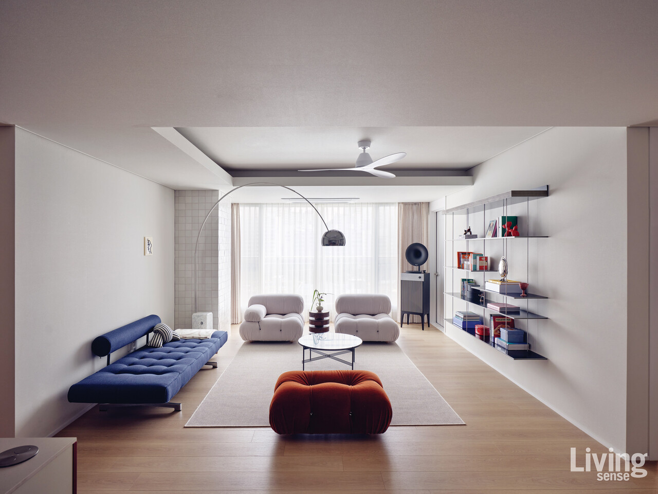 이 집에서 가장 중시한 키워드는 ‘시선’이다. 유리 중문부터 주방까지 이어지는 복도 벽에는 시선이 자연스럽게 흐르도록 갤러리처럼 유리창을 냈고, 주방 역시 두 사람이 마주 볼 수 있도록 설계했다. 특히 주방은 요리를 좋아하는 남편 임현태 씨가 가장 애정을 담은 공간이다. 처음에는 기존의 긴 주방 구조를 활용한 아일랜드형 주방을 고려했지만, 시각적 답답함을 줄이고 식사를 준비하면서도 아내와 자연스럽게 대화할 수 있도록 조리대 앞에 원형 테이블을 놓는 방식으로 변경했다. 식사를 준비하며 일상을 공유하는 주방은 이제 부부가 가장 오래 머무는 장소가 되었다. “이전 집에서도 남편이 자주 저녁을 해줬는데, 주방을 꾸민 뒤엔 외식이 훨씬 줄었어요. 남편이 오랫동안 그려온 로망이 지금 우리의 일상이 되었죠.” 거실도 시선이 머무는 방향을 고려해 가구를 배치했다. 주방을 향해 놓인 모듈형 소파 덕분에, 부부가 서로 다른 공간에 있더라도 눈을 마주칠 수 있게 되었다. 거실에서는 아늑한 주방이, 주방에서는 따뜻한 거실이 한눈에 들어오며, 떨어져 있어도 함께 있는 듯한 감각이 스며든다. 김사라 씨는 새로 꾸민 두 번째 신혼집을 ‘취향 가옥’이라 소개했다. “남편과 함께 서툴더라도 우리만의 것을 찾아가 보자고 말했어요. 무언가를 고를 때마다 함께 고민하고, 더 나은 선택을 하기 위해 노력했죠.” 가구 하나, 소품 하나도 상의하고 절충하며 고르는 시간이 쌓이며 서로에 대한 이해도 깊어졌다. 좋아하는 것들로 채운 만큼, 이 집에서 오래 머물고 싶다는 김사라·임현태 씨 부부. 두 사람이 서로 눈을 맞추며 하루를 마무리하는 이곳은, 그야말로 완벽한 신혼집이다.