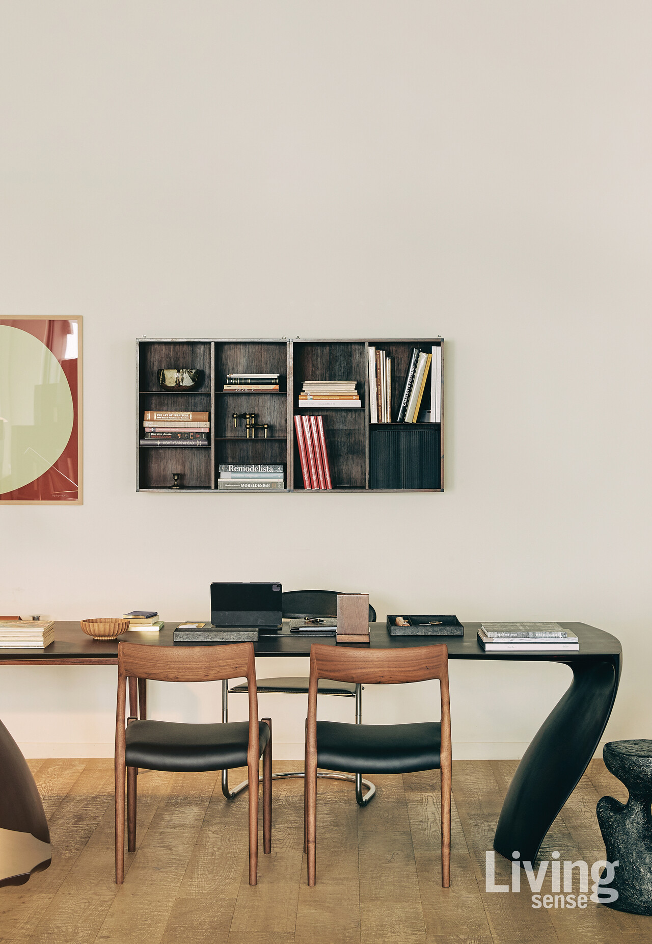 그녀가 덴스크를 일궈오며 오래 지켜온 태도는 균형이다. 북유럽 가구를 꾸준히 들여오고 소개해 온 것도 단순히 스타일을 늘어놓기 위함이 아니다. 사람들의 일상은 늘 논리와 계산, 효율과 판단 같은 좌뇌의 언어에 치우치기 쉽다. 하지만 감각과 직관, 그리고 미감을 받아들이는 우뇌의 결이 더해져야 삶은 비로소 온전해진다. 그래서 그녀의 곁에는 언제나 조형적인 사물들이 놓인다. 강우림 작가의 테이블을 비롯해 석문진 작가의 펜 통, 윤남권 작가의 트레이, 덴마크 여행길에서 우연히 데려온 빈티지 문진까지. 오브제들은 기능을 넘어 책상 위의 공기를 환기하며 익숙한 하루에 다른 호흡을 불어넣는다. 수많은 것 가운데 삶을 풍성하게 해줄 가치를 가려내어 일상에 들이는 일. 덴스크의 철학은 그렇게 그녀의 책상 위에도 고스란히 스며 있다.