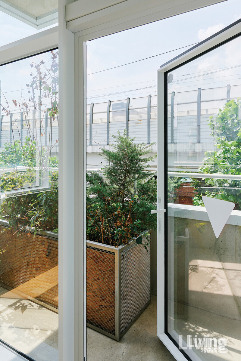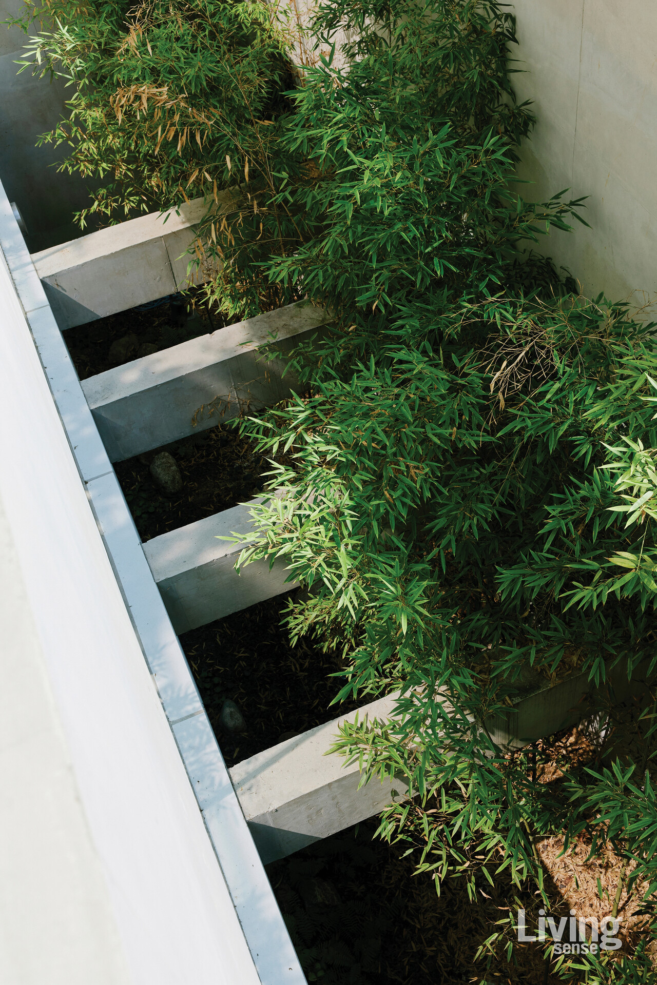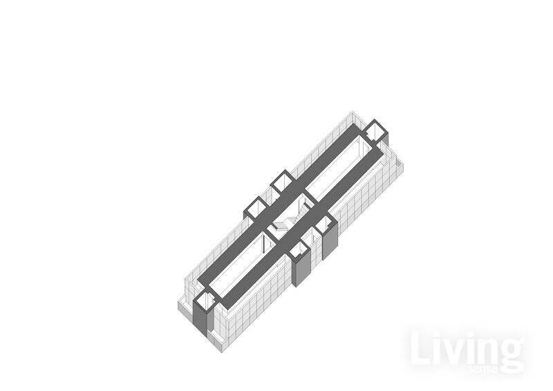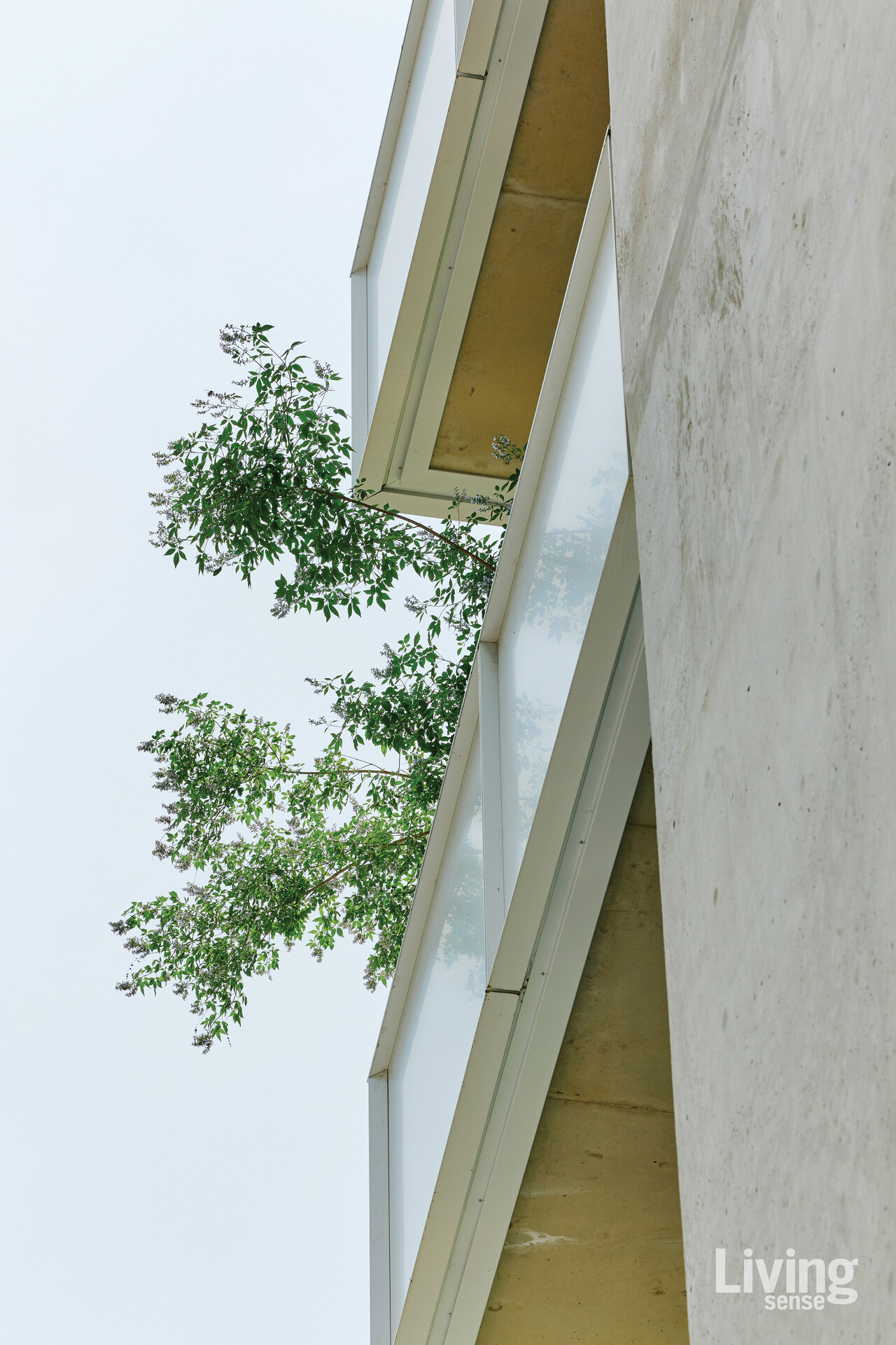 이 건물에는 기둥이 없다. 그 대신 건물 양 끝에 배치한 엘리베이터, 중앙에 둔 화장실과 계단, 설비 공간인 샤프트가 기둥 역할을 대신한다. 가로 단면으로 보면 양 끝 엘리베이터와 중앙 코어 위에 ㅁ자형 보가 얹힌 구조다. 이를 위해 콘크리트에 잡아당기는 힘을 더한 ‘포스트 텐션’ 보를 적극적으로 적용해 하중을 분산해 처짐과 균열을 최소화했다. 바닥을 이루는 보의 끝은 안전성을 위해 말아 올려 낮은 콘크리트 벽을 만들고 그 위에 유리창을 설치했다. 유리를 바닥까지 내리면 시각적으로는 깔끔하지만 끝에 섰을 때 낭떠러지 같은 불안감을 줄 수 있기 때문이다. 양 끝 엘리베이터 옆에는 일하는 중 잠시 쉬어갈 수 있는 작은 발코니를 만들었다.