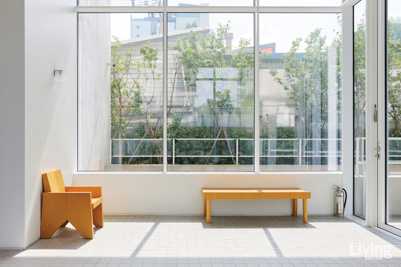큰 통유리창으로 둘러싼 로비는 깔끔한 흰 벽과 사방이 트인 복잡하지 않은 구조 속에 시원한 개방감을 담은 것이 특징이며 곳곳에 놓인 좌석은 스튜디오 씨오엠이 제작한 것으로 편안히 머물 수 있는 여유를 선사한다. 과한 치장 없이도 주변과 조화롭게 어우러지며 오래 봐도 질리지 않는 건물을 지향한 푸하하하프렌즈는 외벽을 알루미늄 패널로 제작해 조립식으로 끼우고 실리콘을 사용하지 않고 콘크리트와 패널 사이를 띄워 자연스러운 그림자 라인을 만들었으며 마감은 알루미늄, 콘크리트, 타일, 유리 등의 재료로 제한해 단순함의 미학을 강조했다.