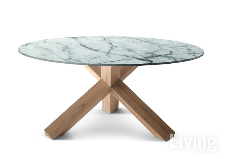 까시나에서 출시한 ‘로톤다’ 테이블. 벨리니는 나무가 지닌 온기를 우아한 형태로 표현하고자 했다. 모닥불 장작을 형상화한 3개의 다리가 포개지듯 맞물려 얇은 유리 상판을 안정적으로 지탱한다.