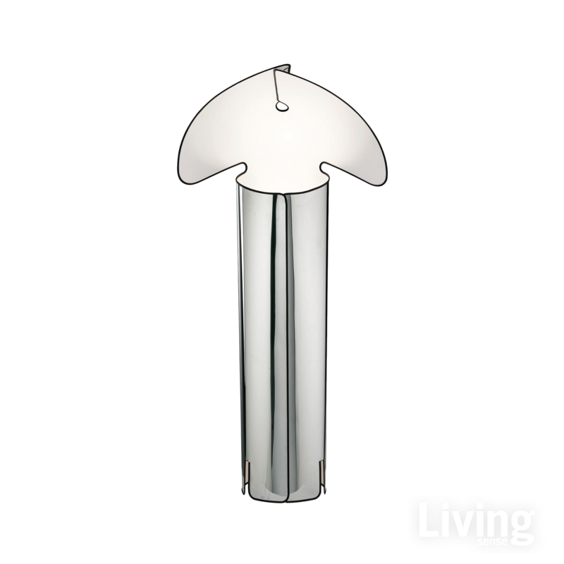 수녀의 베일을 연상케 하는 ‘치아라’ 플로어 램프. 플로스와 협업했다. 벨리니는 종이 모형을 자르고 수정하며 형태를 완성한 뒤, 최종 디자인을 그렸다. 스테인리스 스틸을 원통 모양으로 말아 제작한 이 램프는, 그의 단일 소재 실험을 조명으로 확장한 작품이다. 원통형 베이스 안에 숨겨진 광원이 후드 형태의 전등갓을 통해 부드럽게 퍼져나간다.