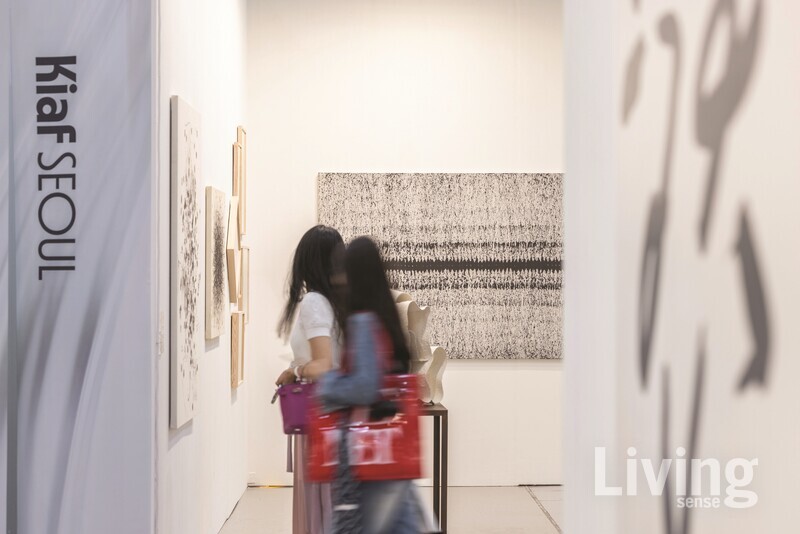 24회를 맞은 ‘키아프 서울’은 9월 3일 VIP 프리뷰에만 9600여 명이 몰렸고, 폐막인 7일까지 8만2000여 명의 관람객이 다녀가며 지난해보다 상승한 수치를 기록했다. 특히 아시아 컬렉터와 2030세대의 방문이 늘어나며 현대미술 시장의 저변 확대 가능성도 엿볼 수 있었다. 거장의 작품부터 신진 작가의 작품까지 고루 판매되어 세일즈 측면에서도 성과를 거뒀다. 국제갤러리는 박서보 작가의 작품을 4억원대에 판매했고, 스위스 출신의 현대 예술가 우고 론디노네(Ugo Rondinone)의 조각 ‘컬러 마운틴’ 시리즈를 완판했다. 가나아트는 일본 설치미술가 시오타 치하루(Shiota Chiharu)의 작품을 약 3억2000만원에, 갤러리 가이아는 김병종 화가의 작품을 1억5000만원에 판매한 것을 포함해 총 57점을 판매하며 두각을 나타냈다. 올해도 특별전과 풍성한 토크 프로그램이 이어졌다. 한일 수교 60주년을 기념해 기획된 특별전 〈리버스 캐비닛〉에서는 한국과 일본 작가들의 작품으로 수집과 진열이라는 예술의 근본적 형식을 재조명했다. 키아프 서울과 프리즈 서울, 예술경영지원센터가 기획한 토크 프로그램 〈2025 Kiaf SEOUL×KAMS×Frieze Seoul〉은 ‘예술재단과 미술계의 구조적 생태’, ‘해외에서 바라본 한국 미술시장의 위상’ 등을 주제로 미술시장에 관한 견해를 나눴다. 9월 2일부터 4일까지 열린 갤러리들의 ‘나잇’ 프로그램도 전년 대비 두 배 이상 인파가 몰리며, 끝없이 이어지는 전시를 즐기는 ‘갤러리 호핑(Gallery Hopping)’의 열기를 보여주었다. 올해 키아프는 거래의 장을 넘어, 공진(Resonance)이라는 주제처럼 교류와 축제의 성격을 강화하며 미술 시장의 새로운 가능성을 열었다.